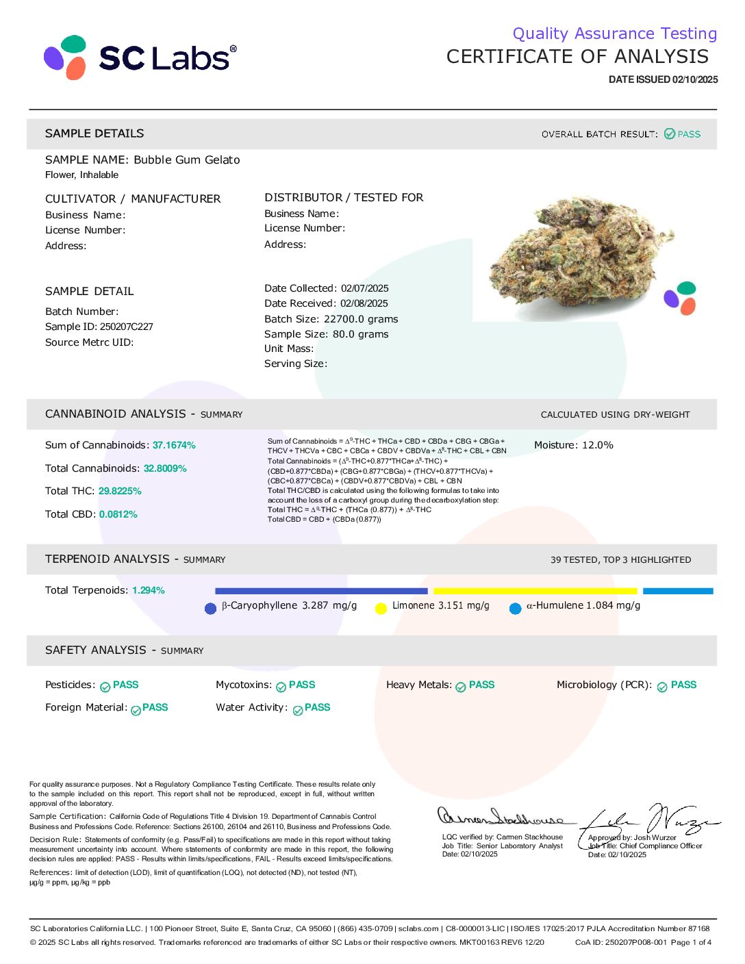 As your mind settles, a sense of creativity will wash over you, lending itself well to any artistic task that you may have at hand. With these relaxing and lifted effects and its high 16-19% average THC level, Bubblegum Gelato is often chosen to treat those suffering from conditions such as chronic pain, appetite loss or nausea, chronic stress, insomnia and chronic fatigue. Bubblegum Gelato buds have fluffy oversized forest green nugs with long thin orange hairs and a coating of tiny golden amber crystal trichomes.