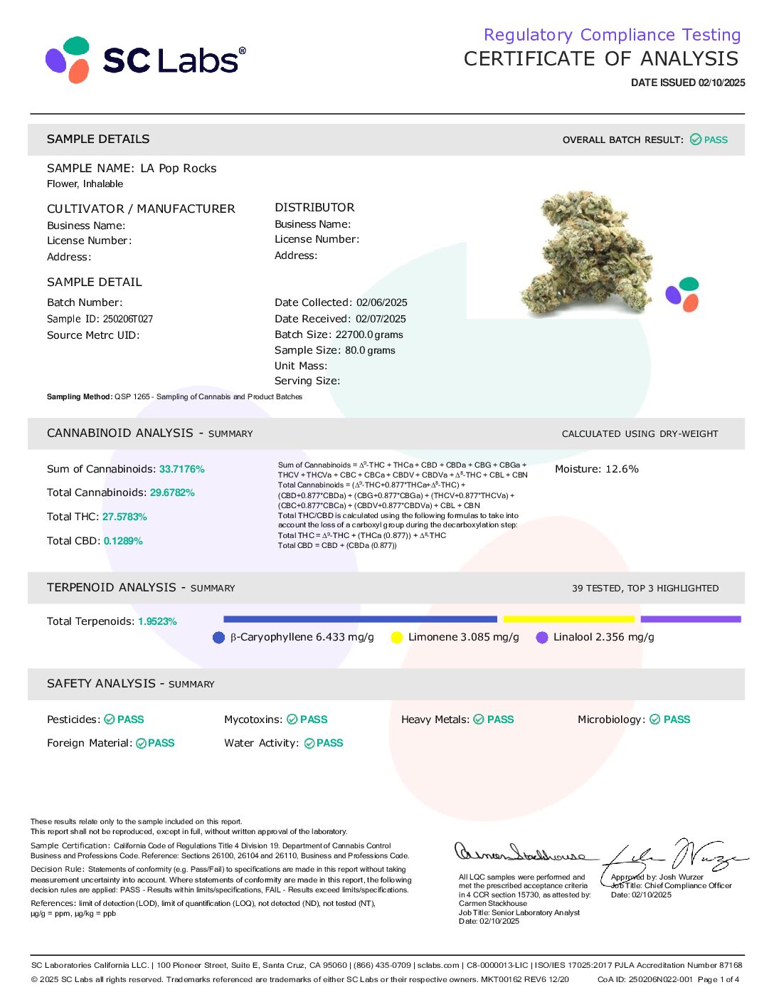 The LA Pop Rockz high will hit you almost immediately upon exhale, rushing into your mind with an energizing sense that boosts your spirits and infuses you with a sense of euphoria. But as your mind flies, your body will begin to settle into a tingly state of pure physical relaxation and ease that will soon turn sedative and sleepy. With these effects and its super high 28-30% average THC level, LA Pop Rockz is often chosen to treat a variety of conditions including chronic stress or anxiety, depression or mood swings, chronic pain, headaches or migraines and chronic fatigue.