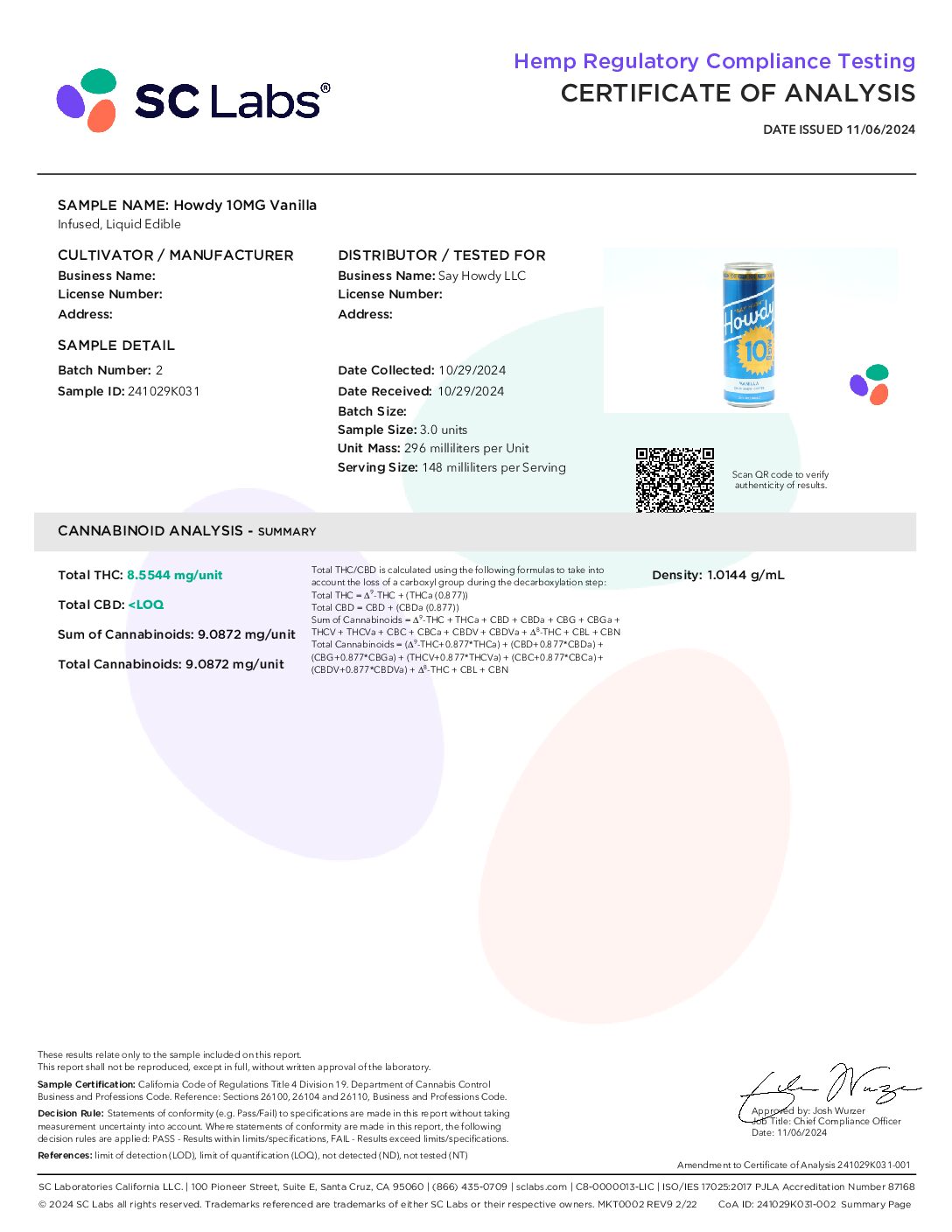 ‍Howdy Cold Brew Black is a smooth and balanced medium roast, Peruvian coffee with 5MG of THC and 170MG of caffeine.